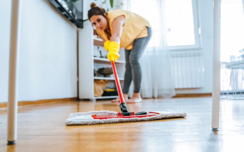 Đây là cách đơn giản nhưng rất cần thiết để xử lý nhanh tình trạng nền nhà bị ẩm ướt. Khi thấy sàn bắt đầu “đổ mồ hôi”, bạn nên dùng khăn khô hoặc cây lau nhà có khả năng thấm hút tốt để lau sạch nước, giúp hạn chế trơn trượt và giữ an toàn khi di chuyển. Việc lau nhà nên thực hiện nhiều lần trong ngày, đặc biệt vào buổi sáng và tối khi độ ẩm tăng cao. Tuy nhiên, đây chỉ là giải pháp tạm thời nên cần kết hợp với các biện pháp kiểm soát độ ẩm khác để đạt hiệu quả lâu dài.