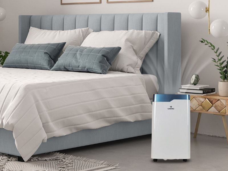 Kiểm soát độ ẩm giúp hạn chế môi trường sống thuận lợi của vi sinh vật. Phòng ngủ nên duy trì độ ẩm khoảng 50–60%, thông thoáng, có ánh nắng hoặc lưu thông khí tốt. Máy hút ẩm gia đình đặc biệt hữu ích vào mùa mưa, nhà ít cửa sổ, giúp chăn ga khô ráo và giảm nguy cơ tái phát bệnh da liên quan ẩm mốc.
