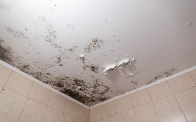 Độ ẩm cao khiến tường nhà, trần nhà dễ bị ẩm mốc, bong tróc sơn