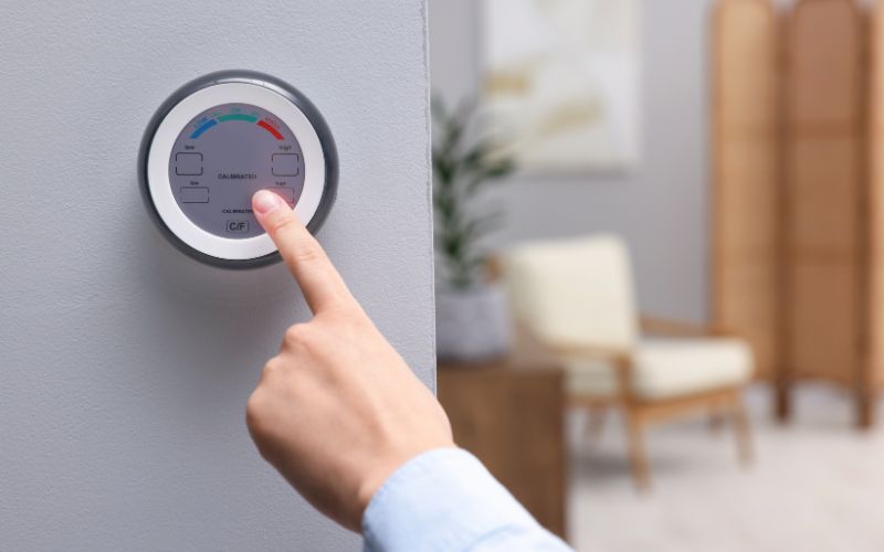 Để đánh giá chính xác, bạn nên dùng máy đo độ ẩm. Chỉ số lý tưởng trong nhà là khoảng 40–60%. Nếu đo thấy vượt mức này, không gian sống đang trong tình trạng ẩm cao và cần các biện pháp kiểm soát độ ẩm kịp thời.