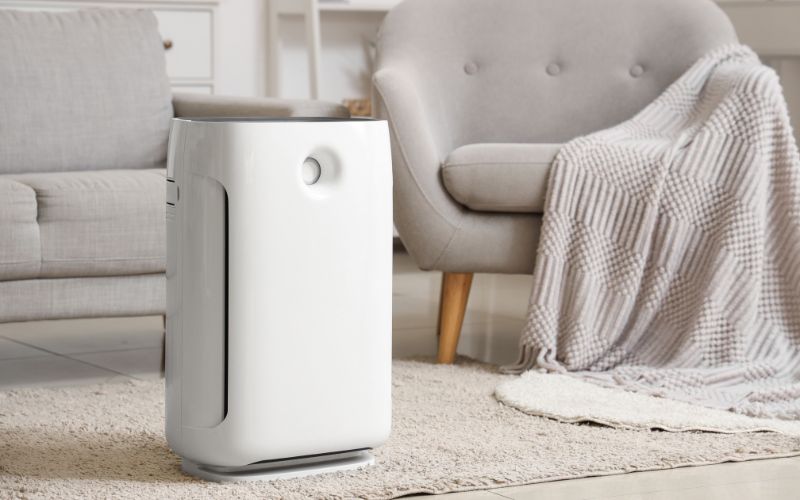 Sử dụng máy lọc không khí giúp hỗ trợ loại bỏ bụi mịn và các hạt lơ lửng