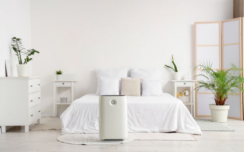 Làm sạch không khí là quá trình cần duy trì đều đặn tạo nên không gian phòng ngủ khô thoáng