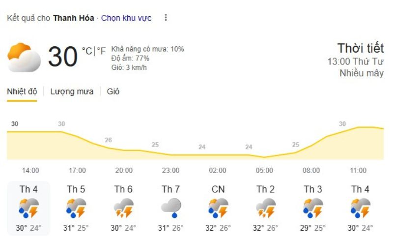 Với thời tiết biến đổi nhanh, đặc biệt ở khu vực Thanh Hóa, việc biết trước nhiệt độ, khả năng mưa và độ ẩm trong những ngày tới sẽ giúp bạn chuẩn bị trang phục, sắp xếp lịch trình và bảo vệ sức khỏe tốt hơn. Bài viết dưới đây sẽ cung cấp dự báo chi tiết thời tiết Thanh Hóa 3 ngày tới, giúp bạn cập nhật tình hình thời tiết một cách đầy đủ và chính xác.