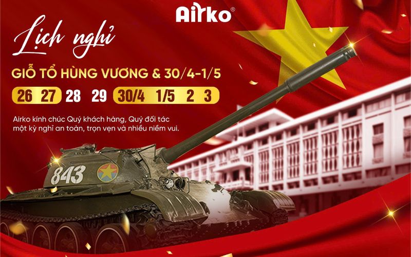 - Giải phóng miền Nam & Quốc tế Lao động (30/4 - 1/5): Nghỉ từ 30/04 đến hết 03/05